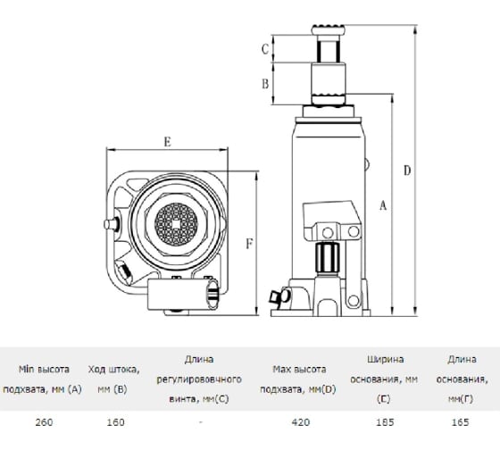 Гидравлический бутылочный домкрат на 32 тонн СТАНКОИМПОРТ TH93204 характеристики