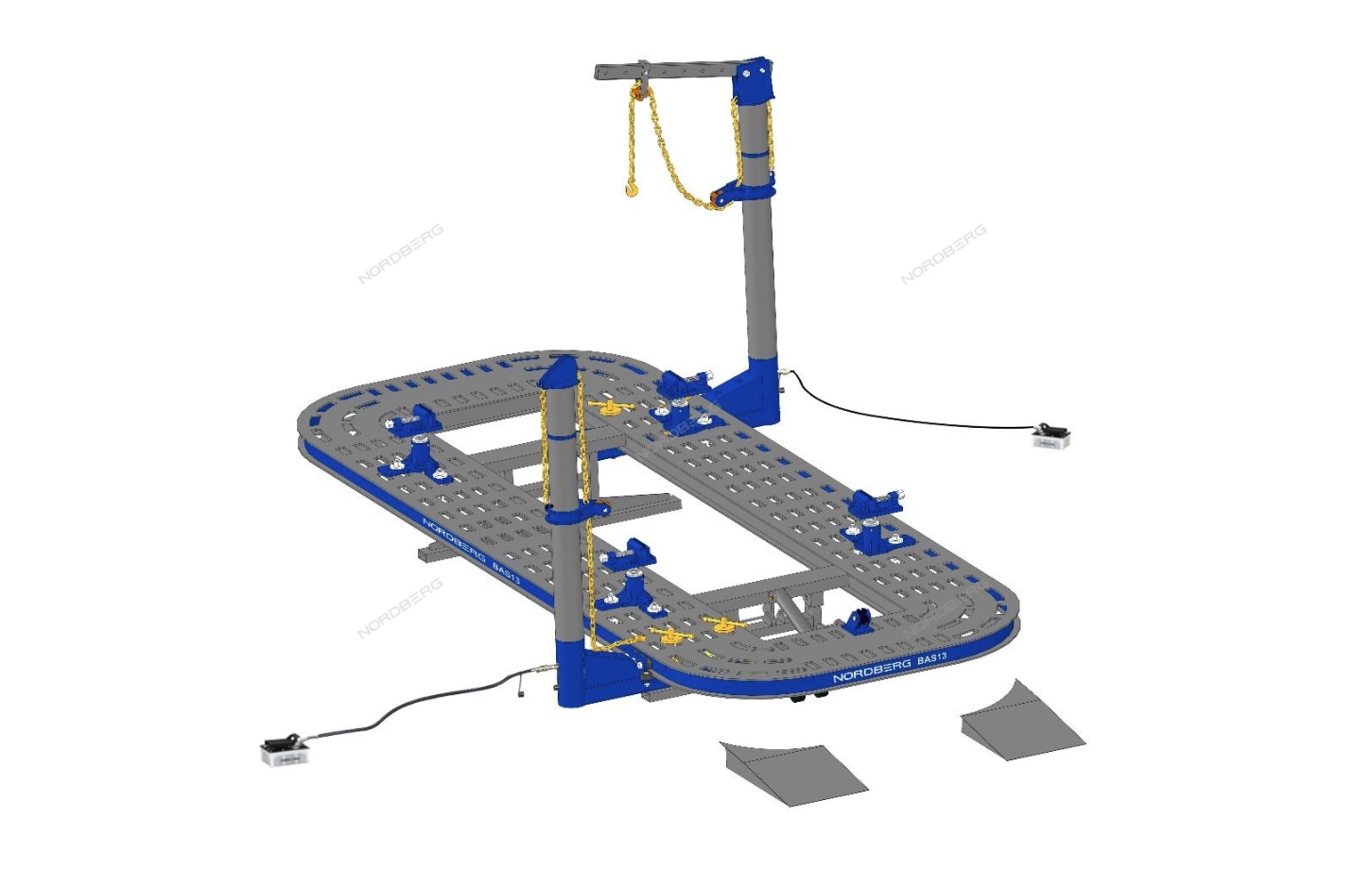 Стапель платформенный Nordberg BAS13 Предназначен для восстановления геометрии кузовов легковых автомобилей и внедорожников.Позволяет производить любые кузовные работы быстро и качественно. Монолитная конструкция рамы позволяет жестко зафиксировать кузов.