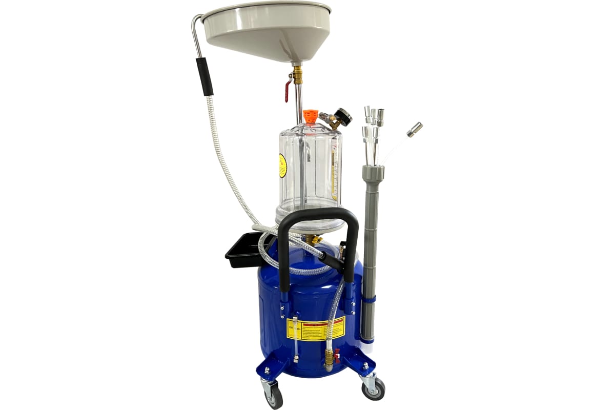 Маслосборник AE&T TF-6238TPG предназначен для сбора отработанного масла, антифриза и других технических жидкостей (с температурой до 60°C) с двигателей, коробок передач и дифференциалов любых автомобилей самотеком и с помощью пневматической откачки. Процедура откачки технических жидкостей через щупы основана на принципе вакуумирования (Вентури-вакуумная вытяжная система), при котором создается разряжение и жидкость засасывается в емкость, и используется в тех случаях, когда слив невозможен. После создания вакуума в установке, она работает самостоятельно. Нет необходимости в постоянном подключении к сети сжатого воздуха. Установка для слива масла оснащена колесами и тем самым легко передвигается по рабочей зоне. Также маслосборника оснащен специальным гибким шлангом для слива отработанного масла из маслосборника.