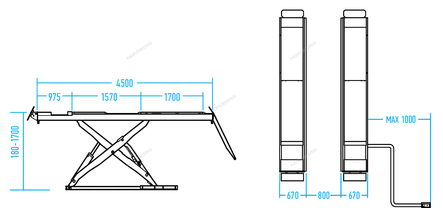 Ножничный подъемник для сход-развала, без заглубления, 4 т. NORDBERG N634-4B_380 характеристики