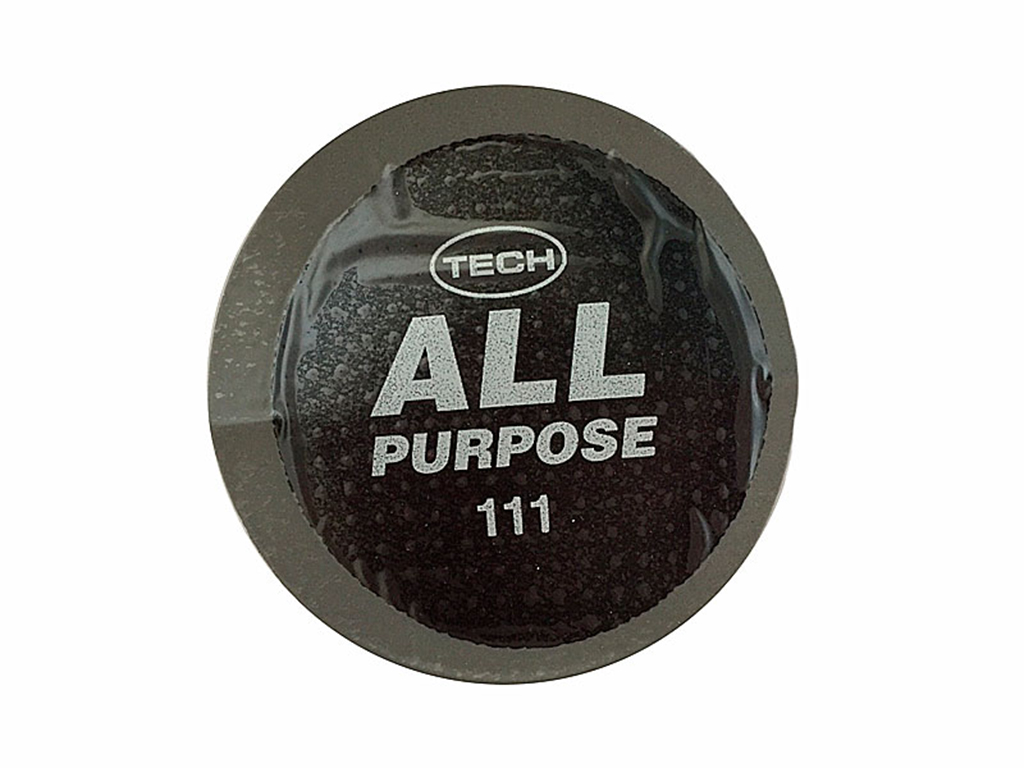 Основным преимуществом универсальных заплат TECH из серии ALL-PURPOSE является быстрый ремонт малых повреждений в радиальных и диагональных покрышках, а также в автомобильных камерах. Универсальная заплата артикул 111 может быть использована при ремонте проколов двойным методом вместе с ножкой грибка. Новый состав заплат и утолщённая резина лучше противостоят деформациям.