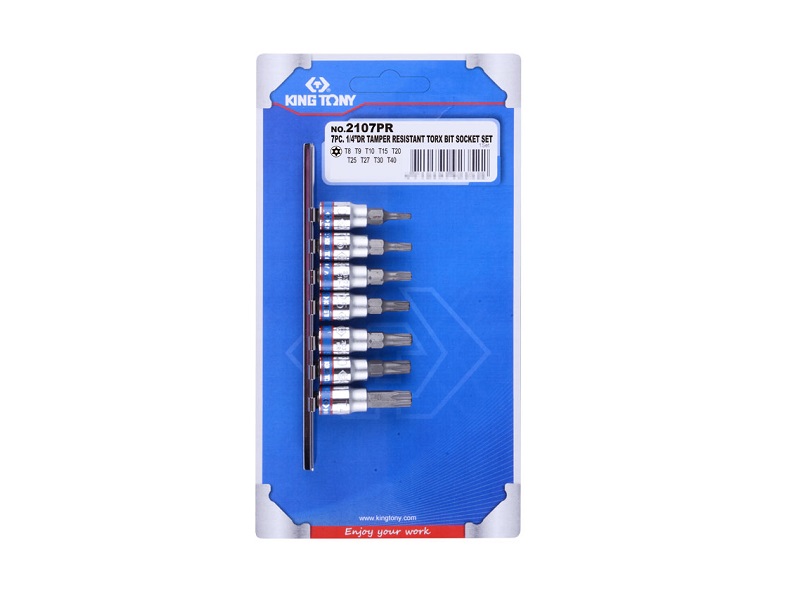 Набор торцевых насадок 1/4", TORX, Т10-Т40 мм, L = 37 мм, 7 предметов KING TONY 2107PR характеристики