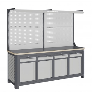 Модуль верстака выполнен сварными. Ящики в модулях устанавливаются на шариковых телескопических направляющих полного выдвижения.
